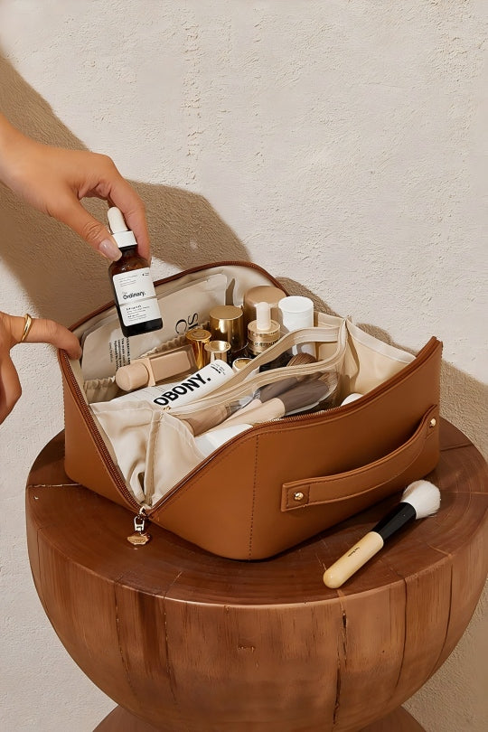 This is a great makeup bag. I bought the medium. It holds a lot. Perfect size for carry on luggage. Everything stays neat and organized. Great quality bag. The zipper works well. I love the center zippered pocket to store make up brushes.