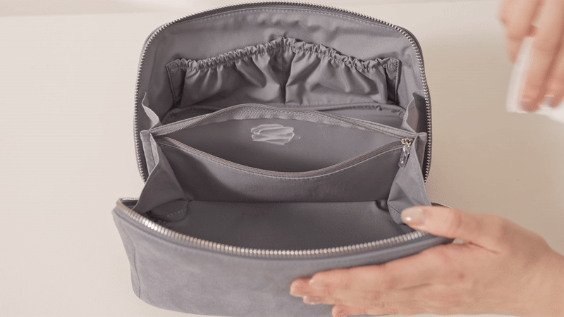 180° lay-flat opening gives you a full view inside. With compartments and a built-in brush holder, everything—from lipsticks to clips and eyeliners—stays in place, saving time with no digging.