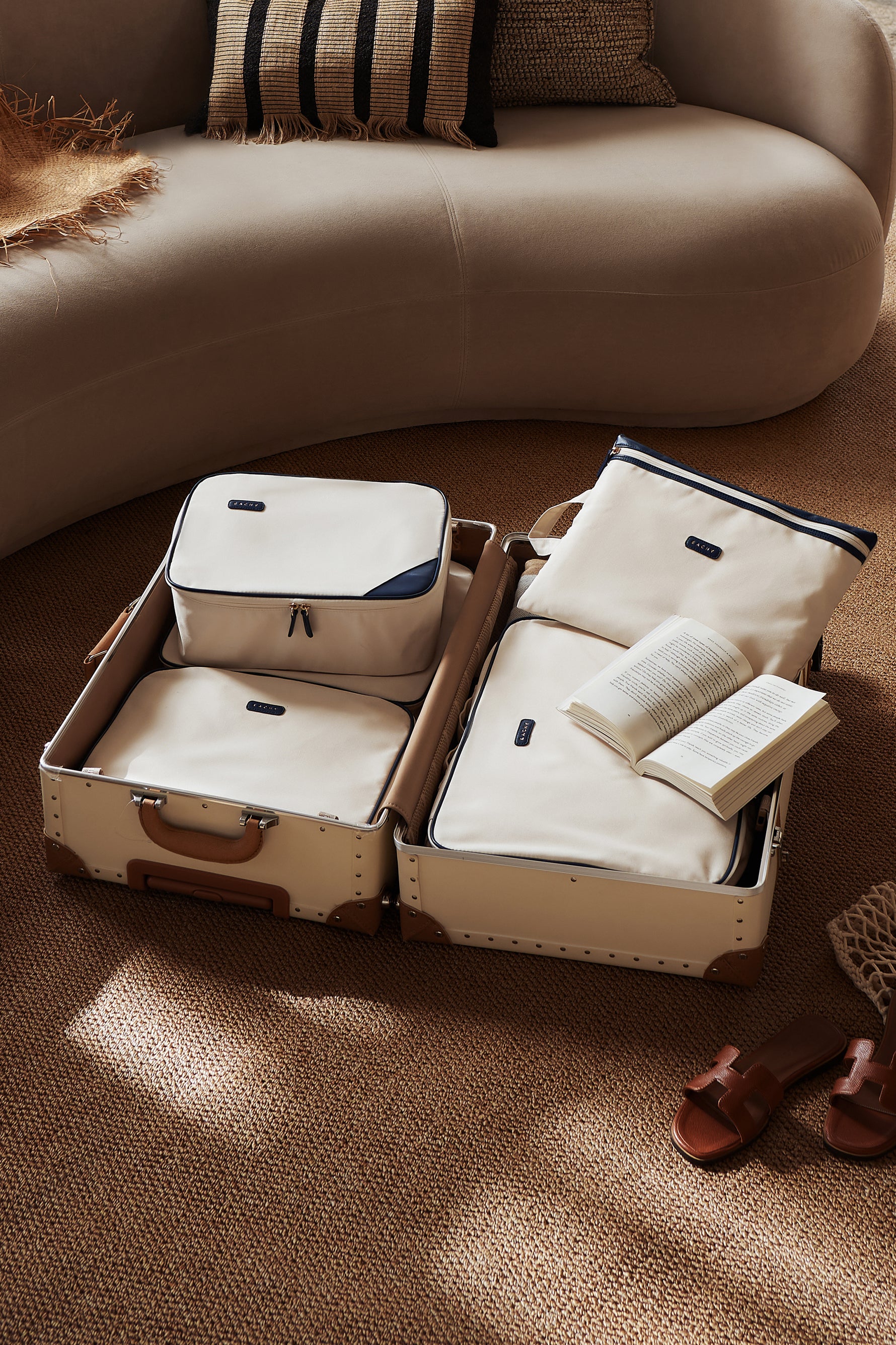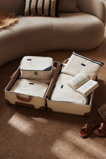 - Versatile Packing Set: This 5-piece set includes a large compression cube (16.5" × 12.6" × 4.7", compresses to 3.1"), two medium cubes (13.4" × 11" × 4.7", compress to 3.1"), a small underwear bag (12.6" × 9.1" × 4.7"), and a flat pouch (14.2" × 10.6"). Perfect for neatly organizing clothes, underwear, and travel essentials in one set.