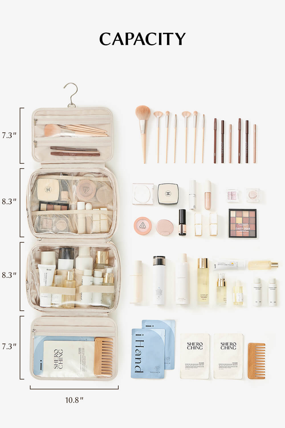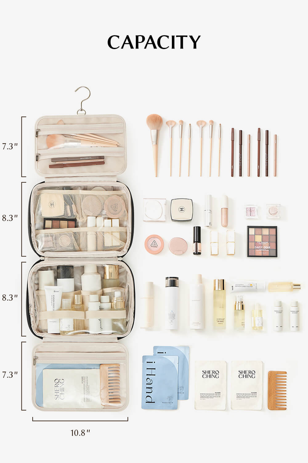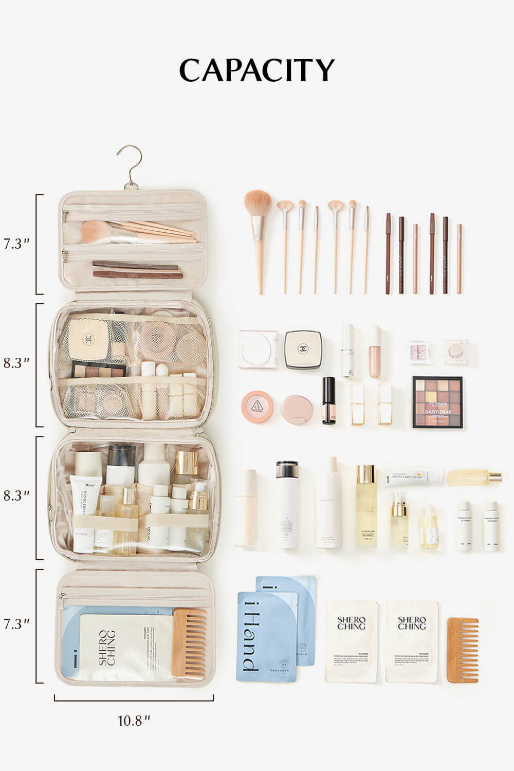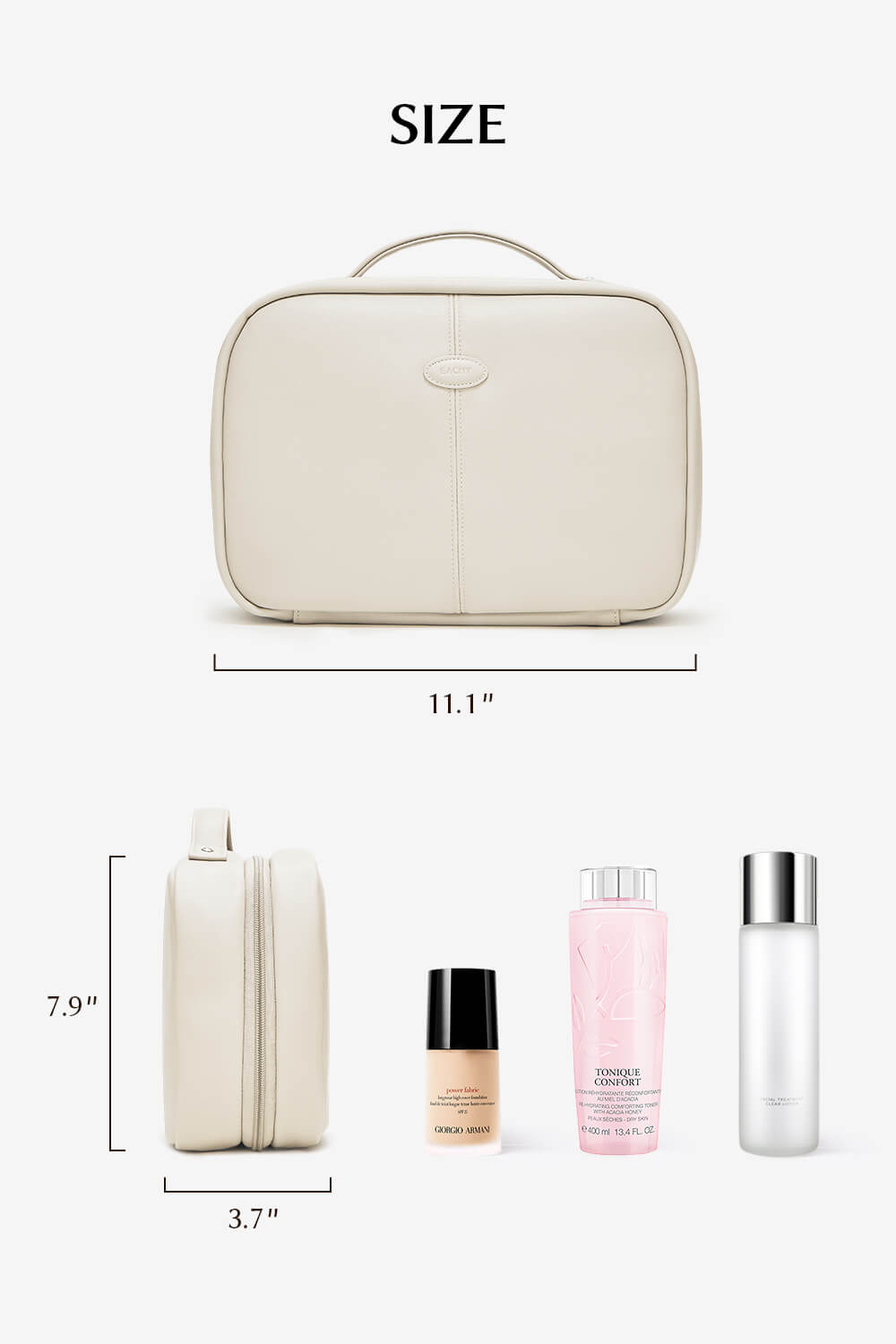 - Spacious yet compact – fits toiletries, skincare, and makeup essentials