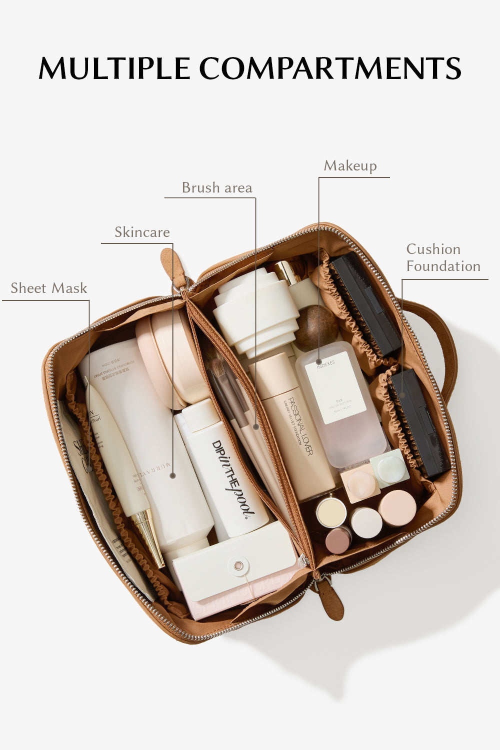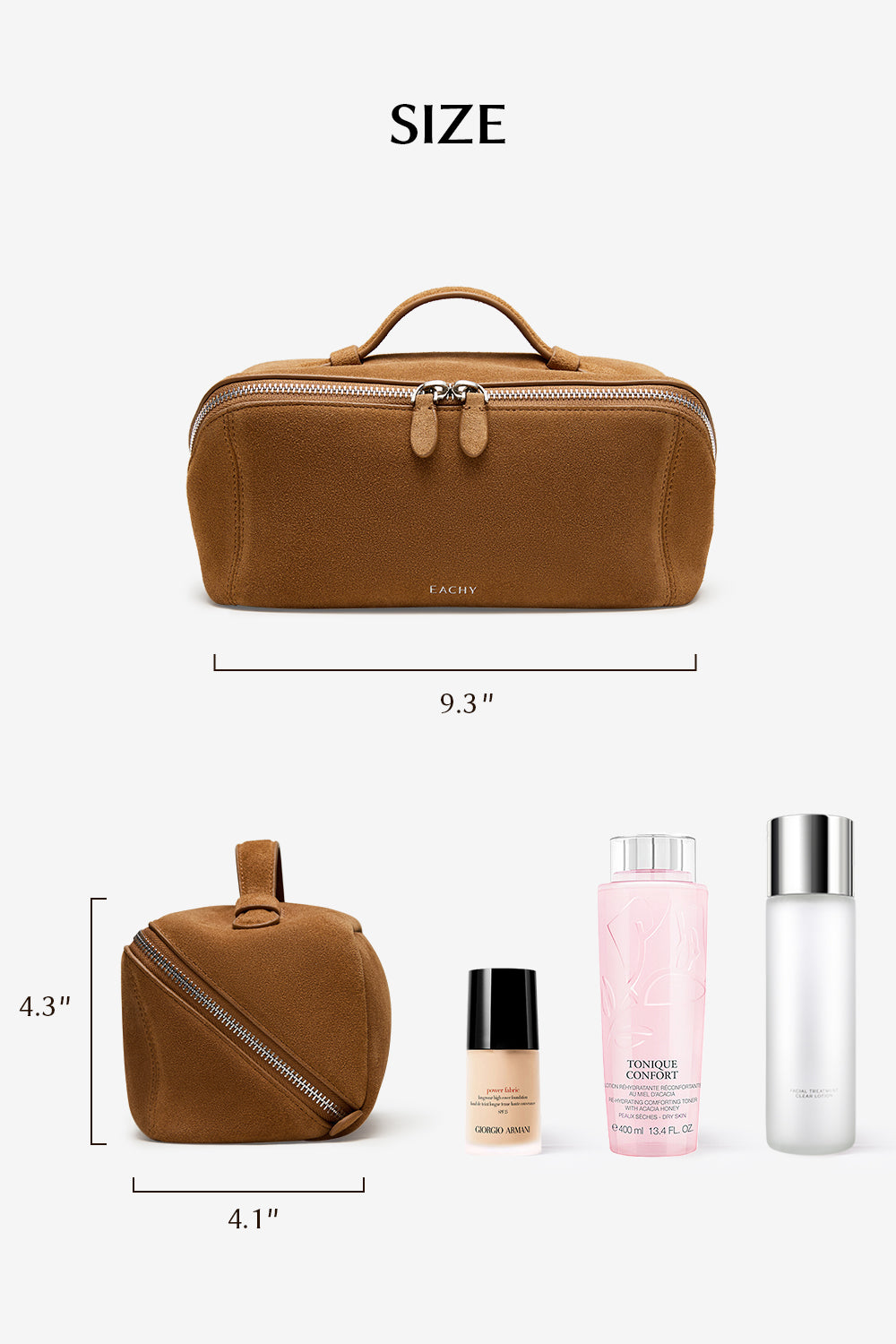 I recently purchased the EACHY Leather Makeup Bag and it has exceeded all my expectations! The first thing that impressed me was the elegant leather design—it looks and feels so luxurious, making it a stylish accessory for any woman. The 180° wide-open flat layout is absolutely genius; it allows me to see everything inside at a glance and makes accessing my cosmetics quick and easy.