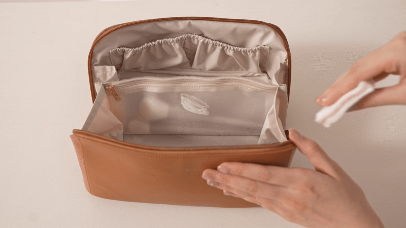Waterproof exterior, water-repellent lining, and wipeable TPU keep makeup messes easy to clean.