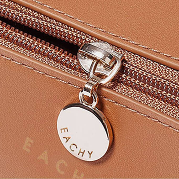 - Material: PU leather; Middle layer: PVC composite; Lining: 100% polyester; Nylon zippers with zinc alloy hardware